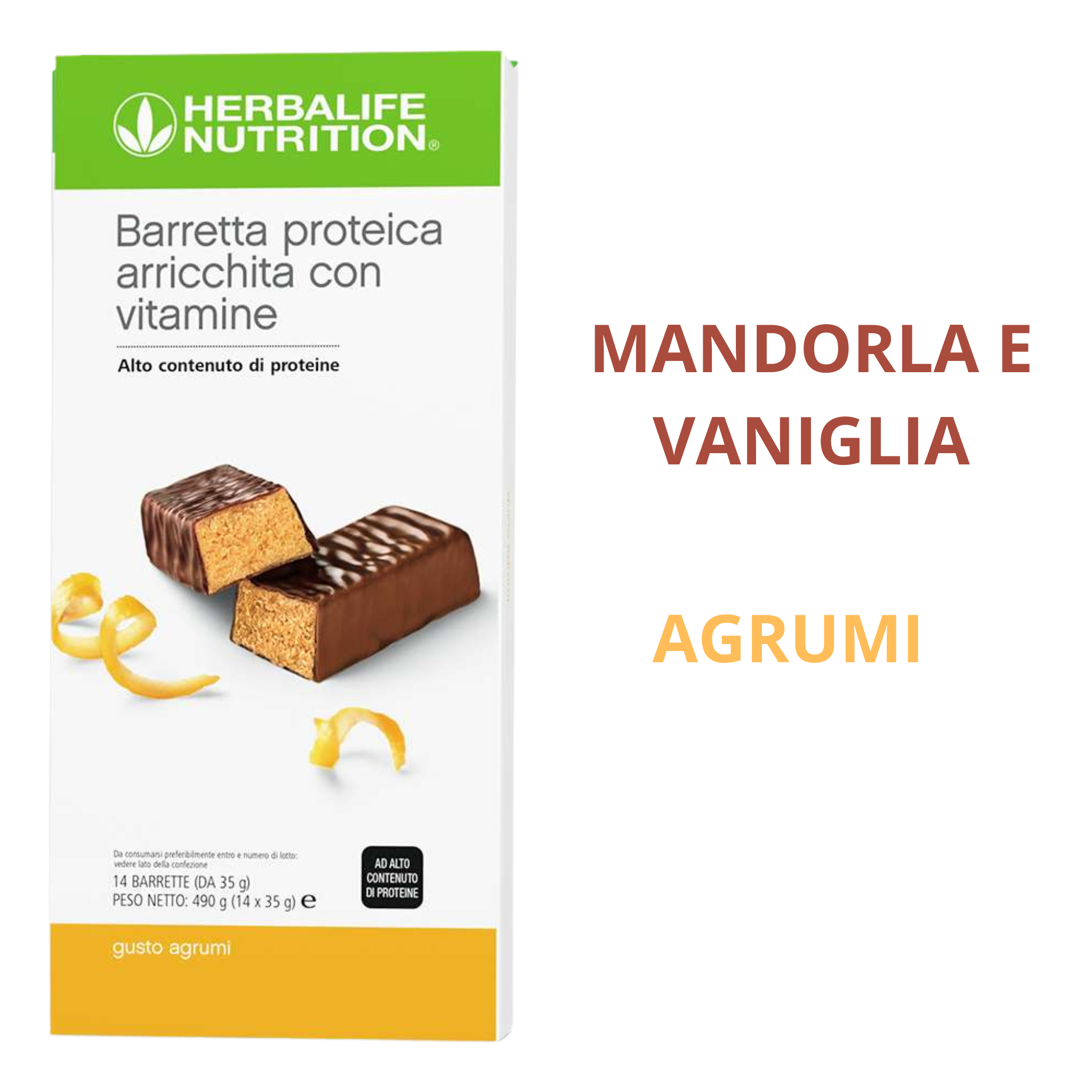 La Barretta proteica Herbalife è uno snack ad alto contenuto proteico, ideale per chi desidera uno spuntino nutriente e bilanciato durante la giornata. Ogni barretta combina proteine di alta qualità con carboidrati e vitamine essenziali, offrendo un equilibrio tra gusto e nutrienti in un formato pratico da portare sempre con sé.